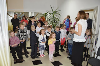 Uroczystość rozpoczęła się z czytania Piśma Świętego i przywitania prezesa Zjednoczenia Szlachty Polskiej Natalii Kosteckiej-Iszczuk, która powiedziała publiczności o polskich tradycjach świętowania Wigilii Bożego Narodzenia. Podziękowała nauczycielom Szkoły Wiedzy o Polsce za prace na rzecz ożywienia tożsamości Polaków mieszkających na Żytomierszczyźnie. Pogratulowała obecnych ze swiętami i prezentowała wszystkim malutkie podarunki wigilijne - nauczycielom szopki a uczniom kartki z personalnymi życzeniami bożonarodzeniowymi.